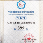 仁和集團連續三年入圍中國民營企業制造業500強,位列第399位