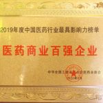 仁和集團榮獲2019年度中國醫藥行業最具影響力榜單醫藥商業百強企業
