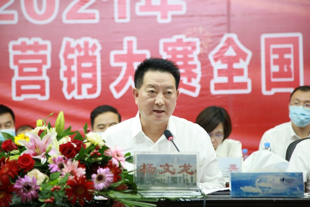 在熱烈的掌聲中,楊文龍董事長發表講話。他向長期以來關心、支持、幫助仁和事業、叮當事業發展的樟樹市委、市政府及各職能部門表示感謝!向奮戰在營銷一線的全體營銷將士、向辛勤工作的工業戰線及機關各條戰線的全體同仁們表示親切慰問!