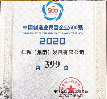 當前位置:網站首頁 關于仁和 企業榮譽 全國榮譽 仁和集團連續三年入圍中國民營企業制造業500強,位列第399位