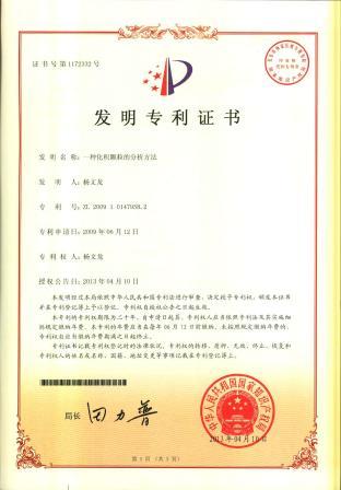 一種化積顆粒的分析方法發明專利證書 發布時間: 2019年12月18日 11:48:41 閱讀量: 9,858 下一篇:一種含有塞隆骨的藥物組合物及其制備方法和質量控制方法發明專利證書上一篇:一種口腔消毒衛生產品發明專利證書