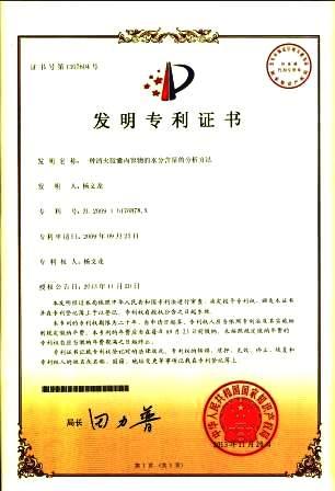 一種清火膠囊內容物的水分含量的分析方法發(fā)明專利證書 發(fā)布時間: 2019年12月18日 11:51:26 閱讀量: 11,185 下一篇:一種前列金丹膠囊的分析方法發(fā)明專利證書上一篇:一種濕毒清片的分析方法發(fā)明專利證書