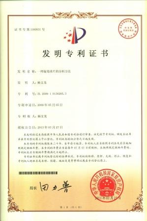 當前位置:網站首頁 科研質量 研發實力 一種濕毒清片的分析方法發明專利證書