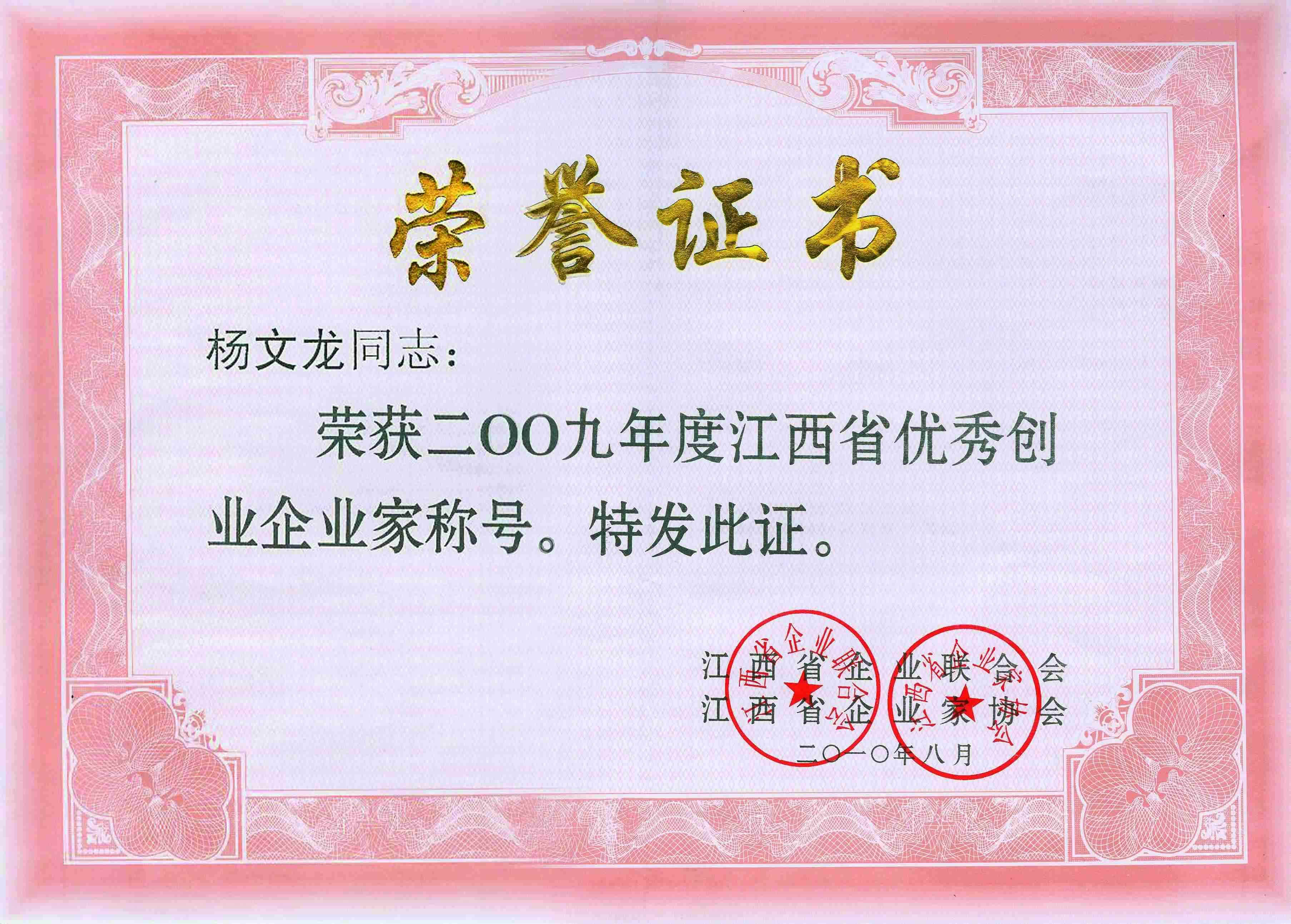 2009年度江西省優(yōu)秀創(chuàng)業(yè)企業(yè)家稱號 發(fā)布時間: 2019年12月18日 16:26:50 閱讀量: 10,814 下一篇:改革開放30年江西省十大杰出建設者上一篇:2009年度優(yōu)秀企業(yè)家